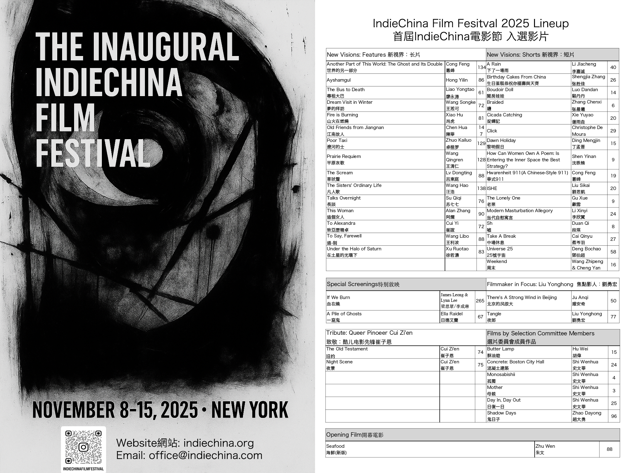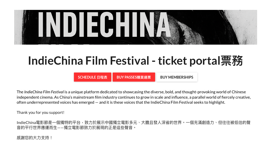 Tickets and passes are now on sale! Explore the full schedule and secure your seats on our ticket portal: indiechina.eventive.org. Quantities are limited—purchase early to guarantee your spot.